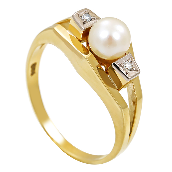 Ring, 14K, Gelb-/Weißgold, Perle, Diamanten