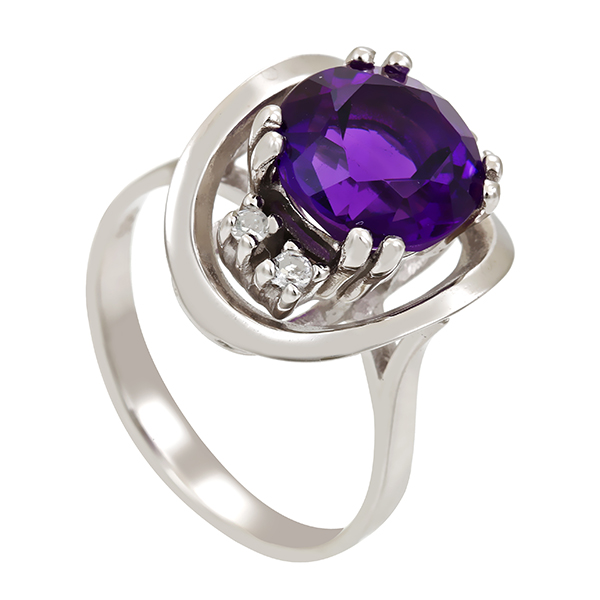 Ring, 14K, Weißgold, Amethyst, Brillanten