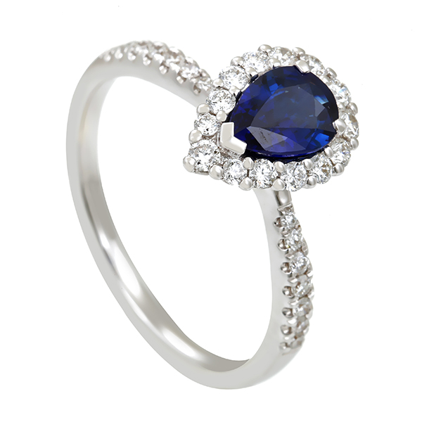 Ring, 18K, Weißgold, Saphir, Brillanten
