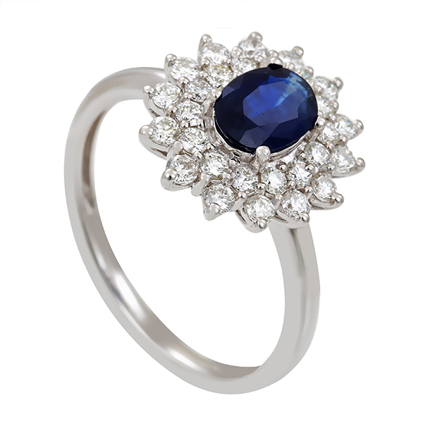 Ring, 14K, Weißgold, Saphir, Brillanten 0,60 ct