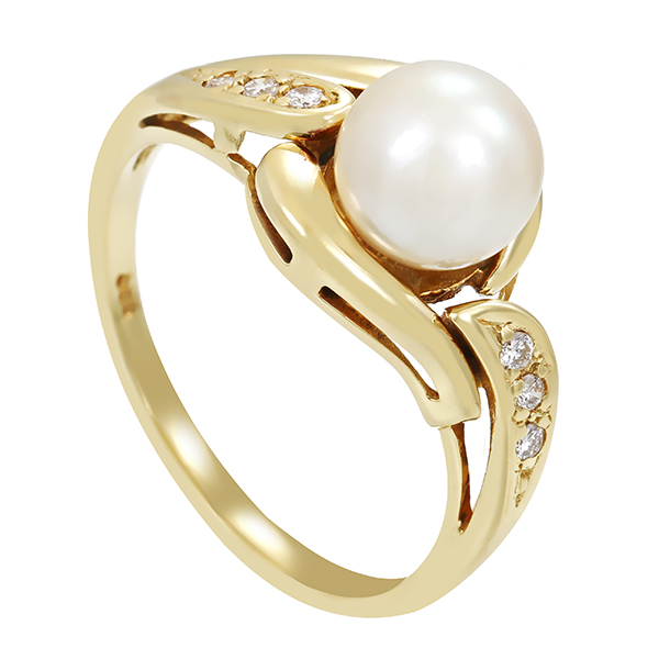 Ring, 14K, Gelbgold, Perle, Brillanten