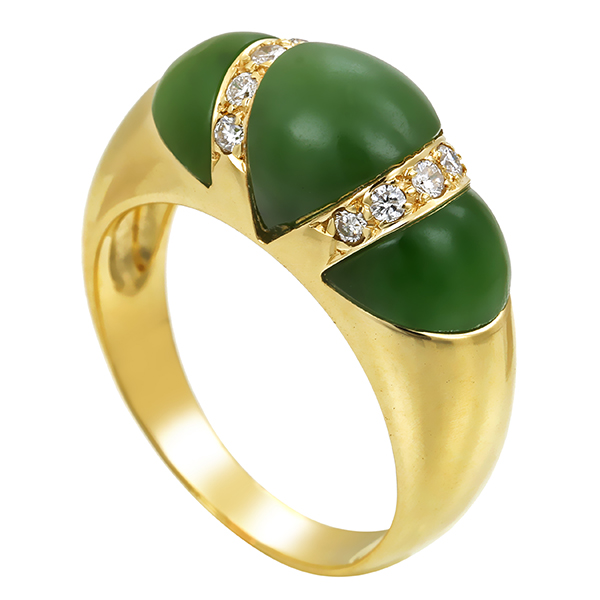 Ring, 14K, Gelbgold, Nephrite, Brillanten