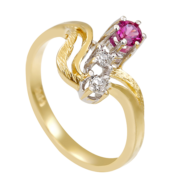 Ring, 14K, Gelb-/Weißgold, Rubin, Diamanten