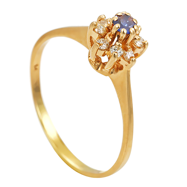 Ring, 14K, Gelbgold, Saphir, Brillanten