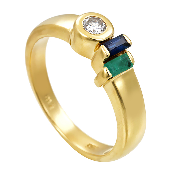 Ring, 14K, Gelbgold, Brillant, Saphir, Smaragd