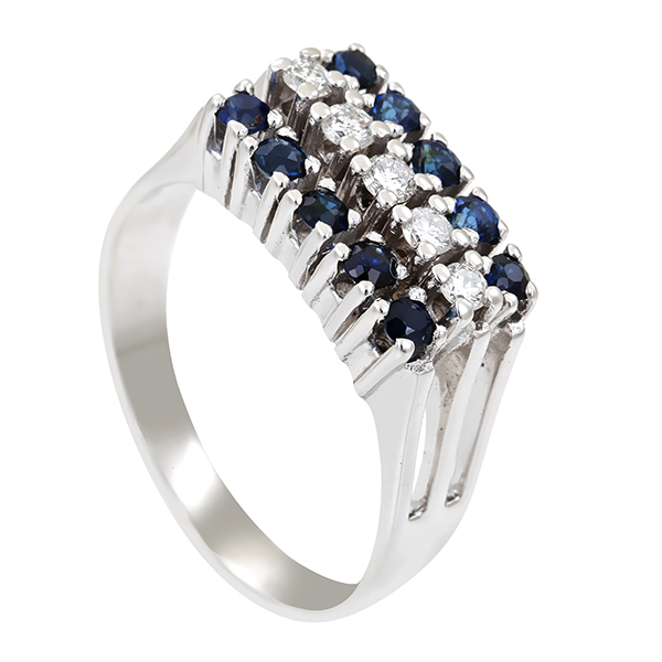 Ring, 14K, Weißgold, Saphire, Brillanten