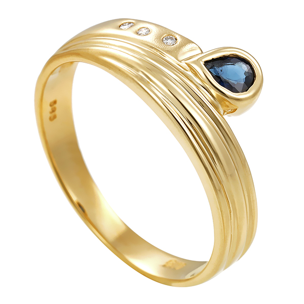 Ring, 14K, Gelbgold, Saphir, Brillanten