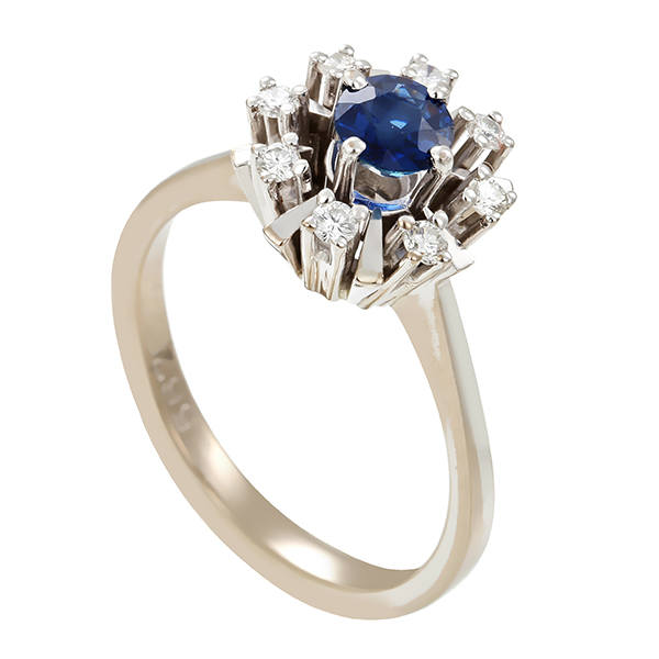 Diamantring, 18K, Weißgold, Brillant, Saphir