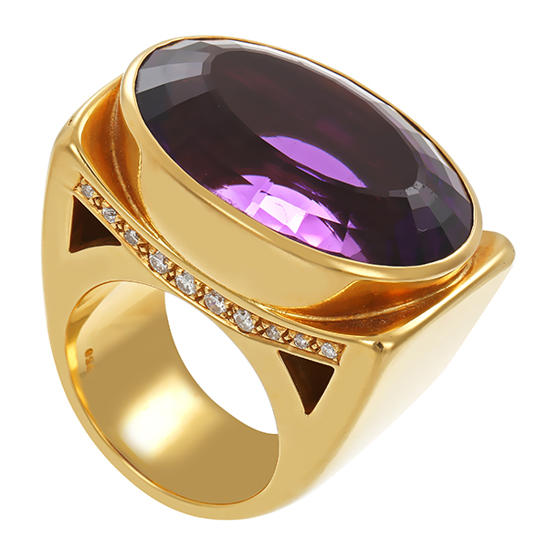 Ring, 18K, Gelbgold, Brillant, Amethyst
