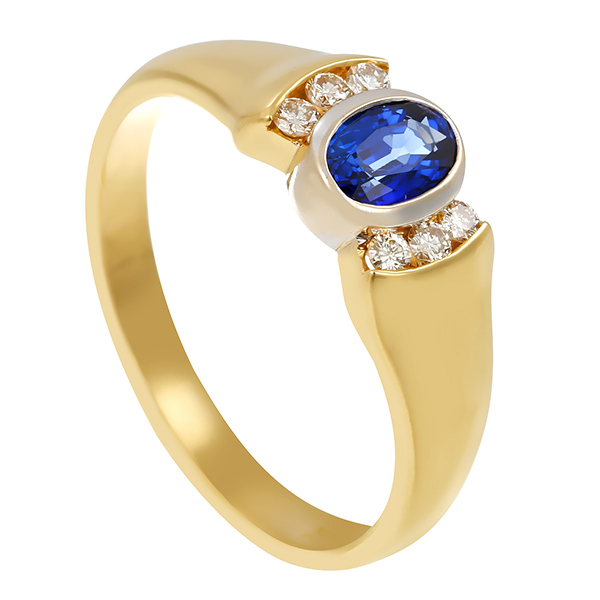 Ring, 18K, Gelb-/Weißgold, Saphir, Brillanten