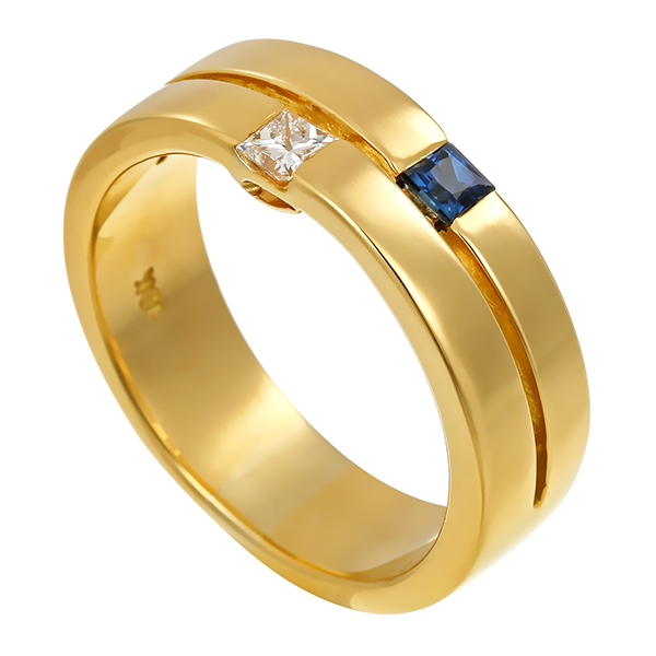 Ring, 18K, Gelbgold, Saphir, Diamant