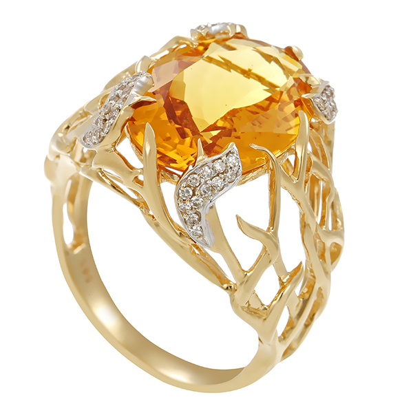 Ring, 14K, Gelbgold, Citrin, Diamant 0,48 ct