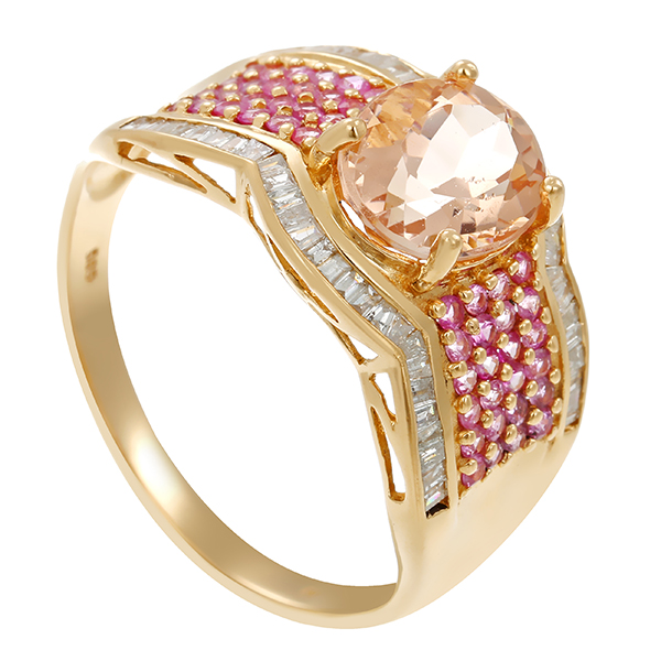 Ring, 14K, Gelbgold, Morganit, Saphire, Diamanten