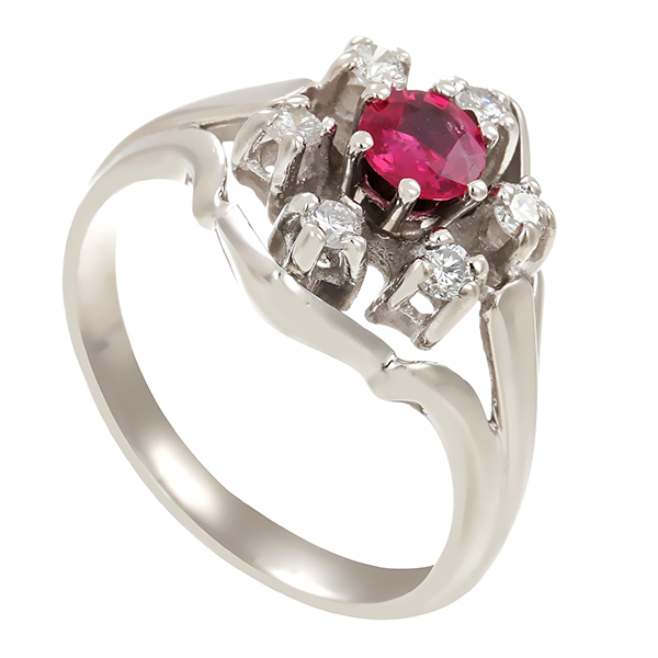 Ring, 14K, Weißgold, Rubin, Brillanten