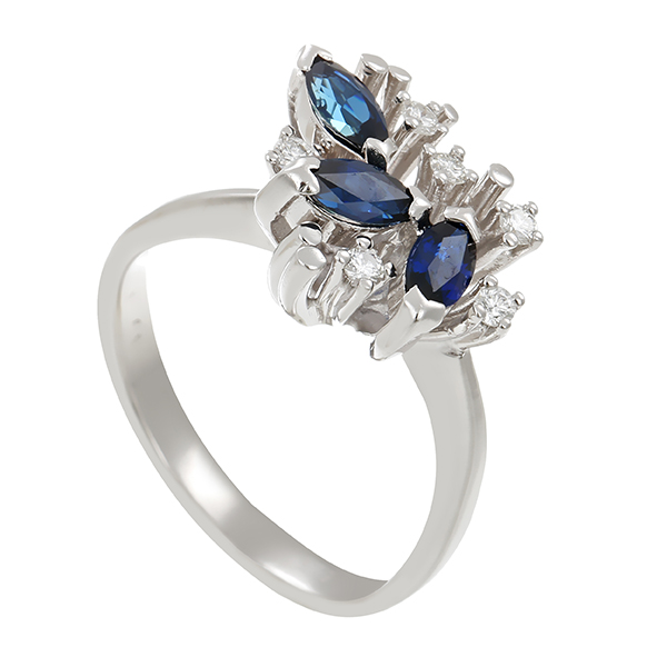 Ring, 14K, Weißgold, Brillanten, Saphire