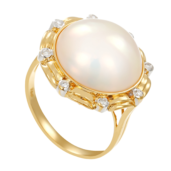 Ring, 18K, Gelbgold, Mabeperle, Brillanten