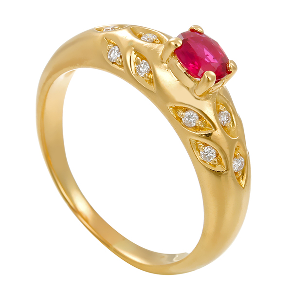 Ring, 18K, Gelbgold, Rubin, Brillanten