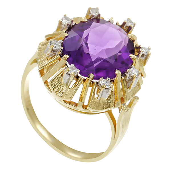 Ring, 14K, Gelbgold, Amethyst, Diamanten
