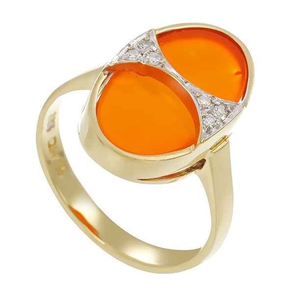 Ring, 14K, Gelb-/Weißgold, Karneol, Diamanten