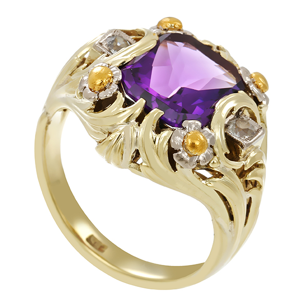 Ring, 14K, Gelb-/Weißgold, Amethyst, Bergkristall