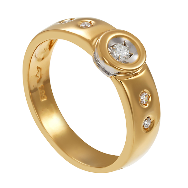 Diamantring, 14K, Gelb-/Weißgold, Brillanten 0,18 ct