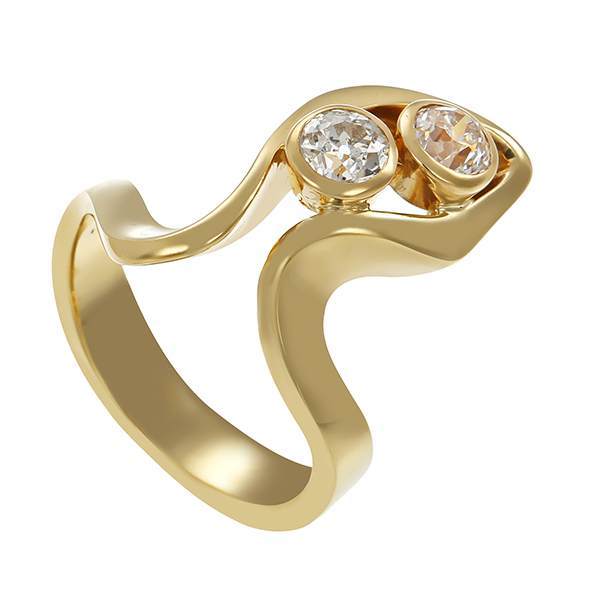 Diamantring, 14K, Gelbgold, Diamanten 0,84 ct, Altschliff