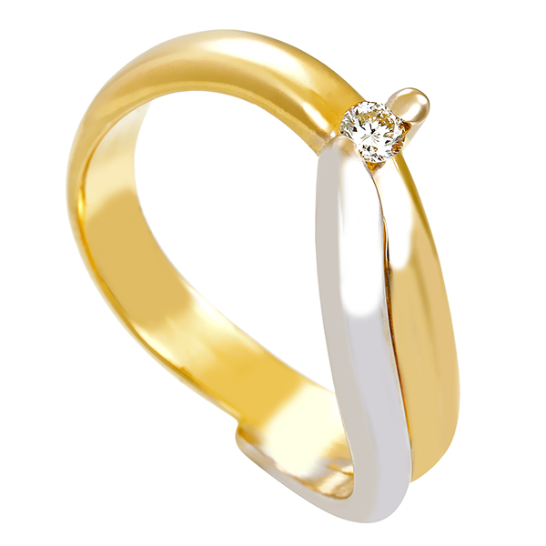 Diamantring, 18K, Gelb-/Weißgold, Brillant