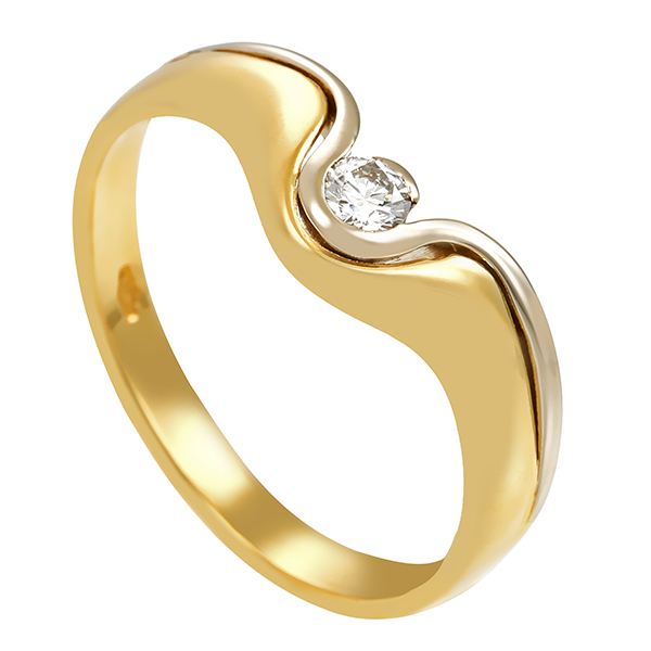 Diamantring, 18K, Gelb-/Weißgold, Brillant