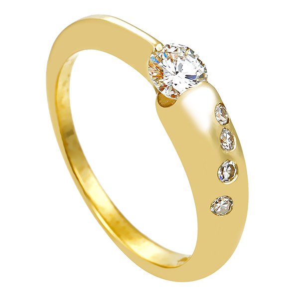 Diamantring, 14K, Gelbgold, Brillanten