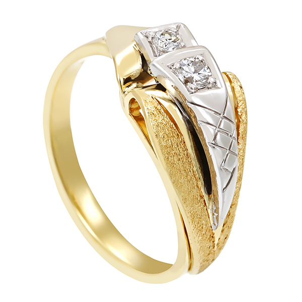 Diamantring, 14K, Gelb-/Weißgold, Handarbeit, Brillanten