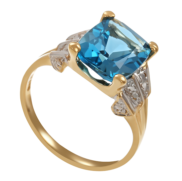 Ring, 9k, Gelb-/Weißgold, Topas blau