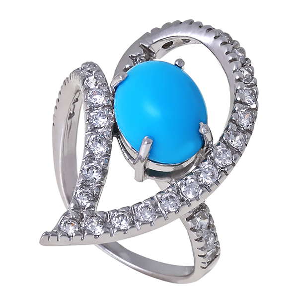 Ring, 18K, Weißgold, Zirkonia, Türkis rekonstruiert
