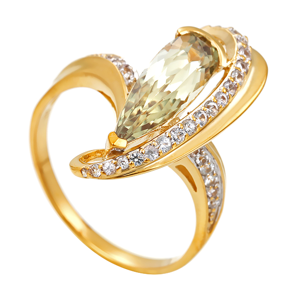 Ring, 14K, Gelbgold, Rauchquarz, Zirkonia