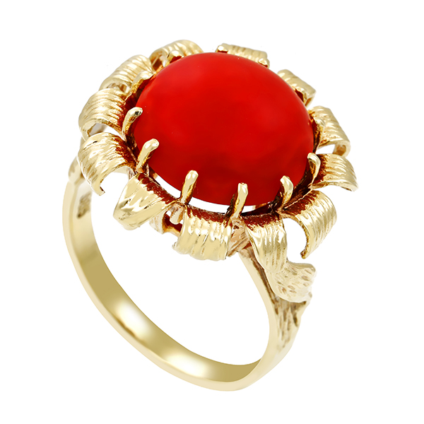 Ring, 14K, Gelbgold, Koralle