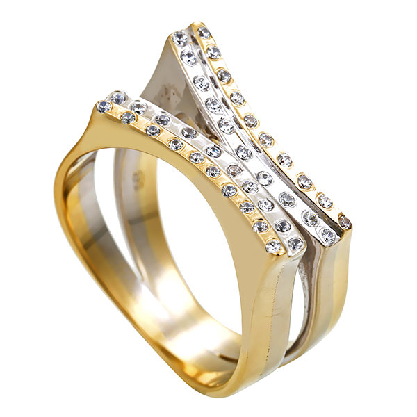 Ring, 14K, Gelb-/Weißgold, Zirkonia