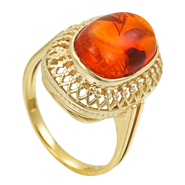 Ring, 14K, Gelbgold, Bernstein