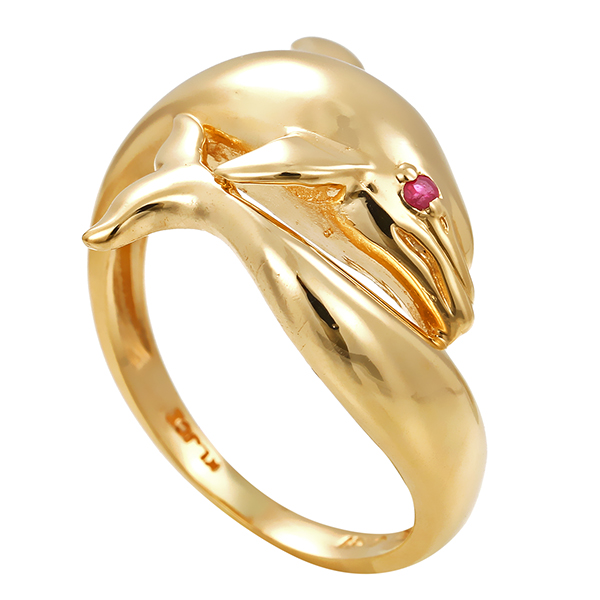 Ring, 14K, Gelbgold, Rubin, Delphin