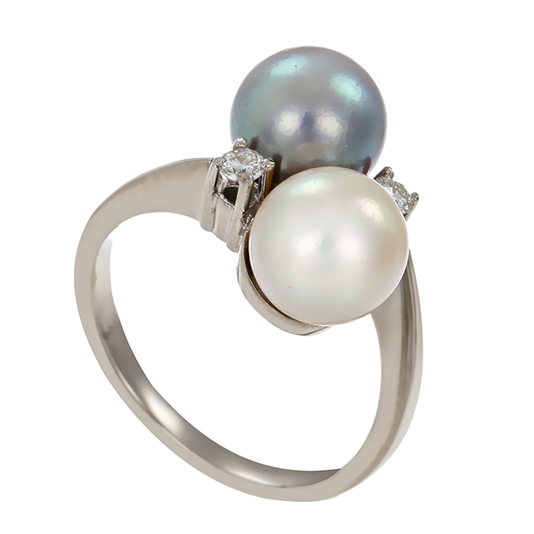 Ring, 18K, Weißgold, Perle, Brillanten