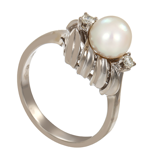 Ring, 14K, Weißgold, Perle & Brillant, U56
