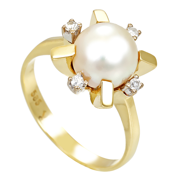 Ring, 14K, Gelbgold, Diamant(en), Perle(n)