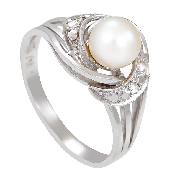 Ring, 18K, Weißgold, Diamantrosen, Perle