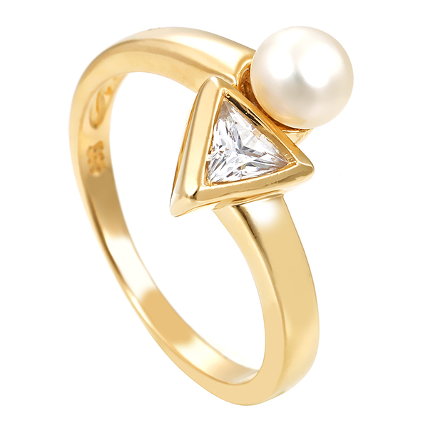 Ring, 14K, Gelbgold, Perle, Zirkonia