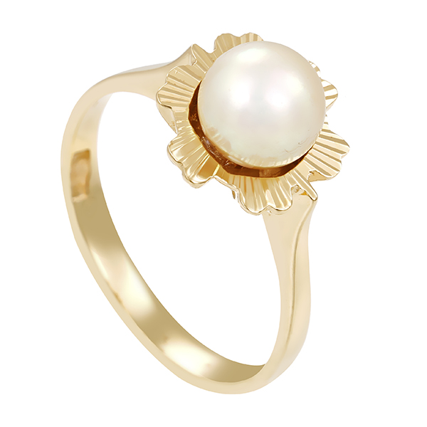 Ring, 14K, Gelbgold, 1 Perle