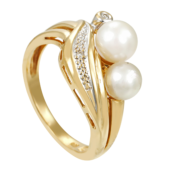 Ring, 14K, Gelb-/Weißgold, Perlen, Diamanten