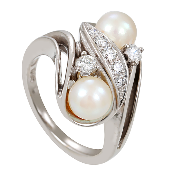Ring, 14K, Weißgold, Perlen, Brillanten