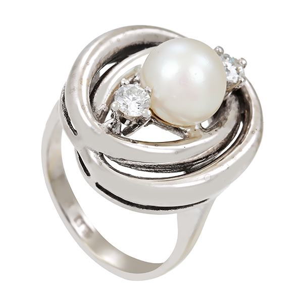 Ring, 14K, Weißgold, Perle, Brillant
