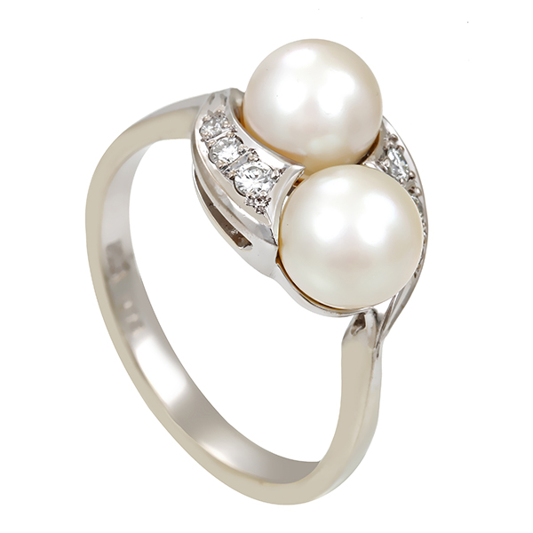 Ring, 14K, Weißgold, Perlen, Brillanten