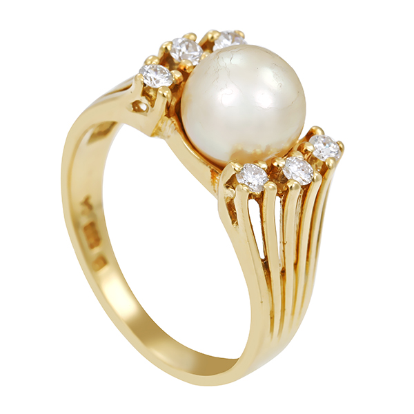Ring, 14K, Gelbgold, Perle, Brillanten