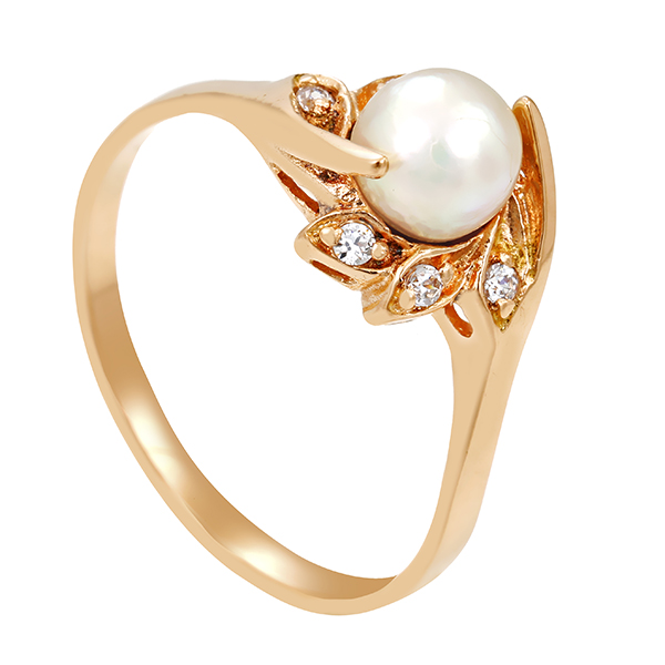 Ring, 14K, Rotgold, Perle, Zirkonia