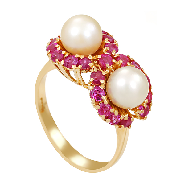 Ring, 18K, Gelbgold, Perlen, Rubine
